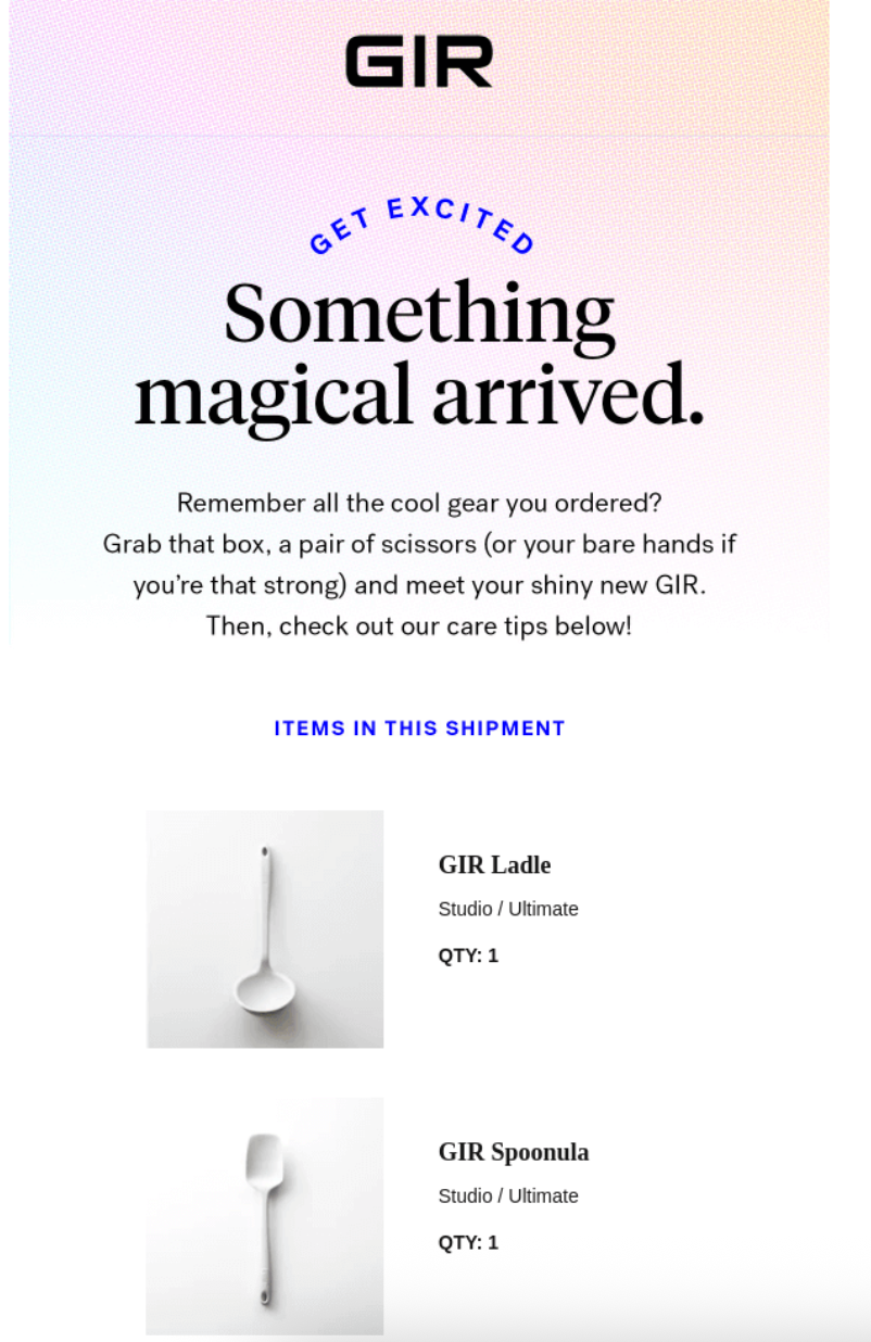 Once tracking is handled, shipping notifications give you a chance to build anticipation and increase product success by delivering usage tips, styling ideas, or setup guidance tailored to what the customer bought.