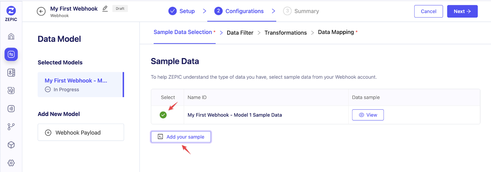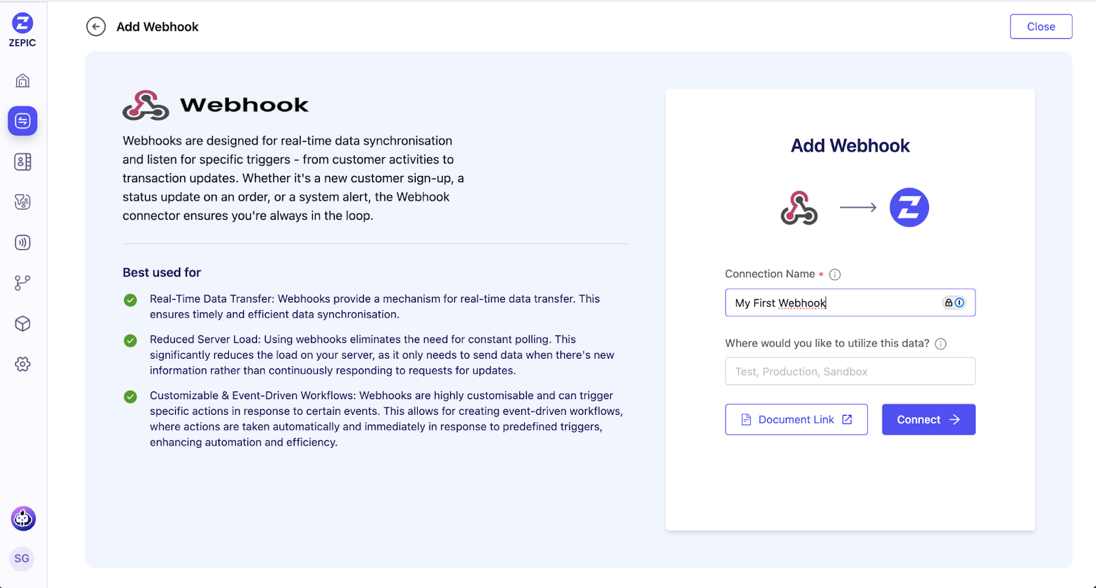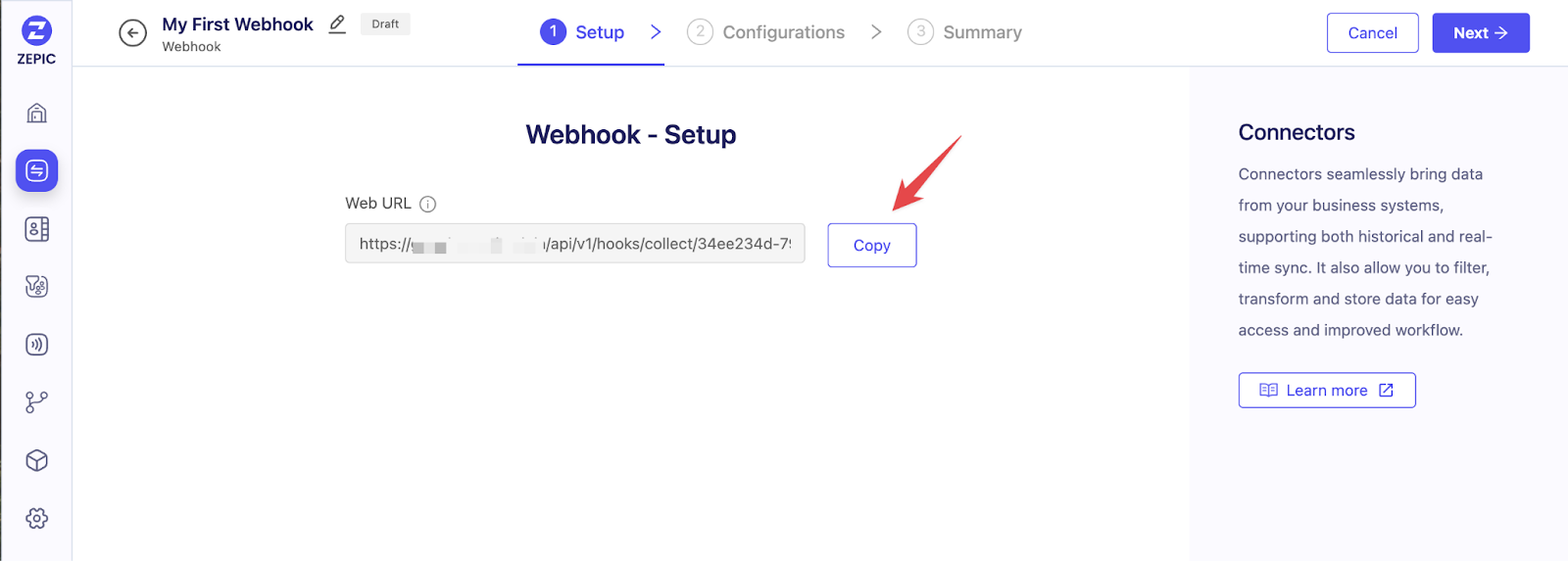 Generate Your URL: Give your webhook a name, and ZEPIC will provide a unique URL.
