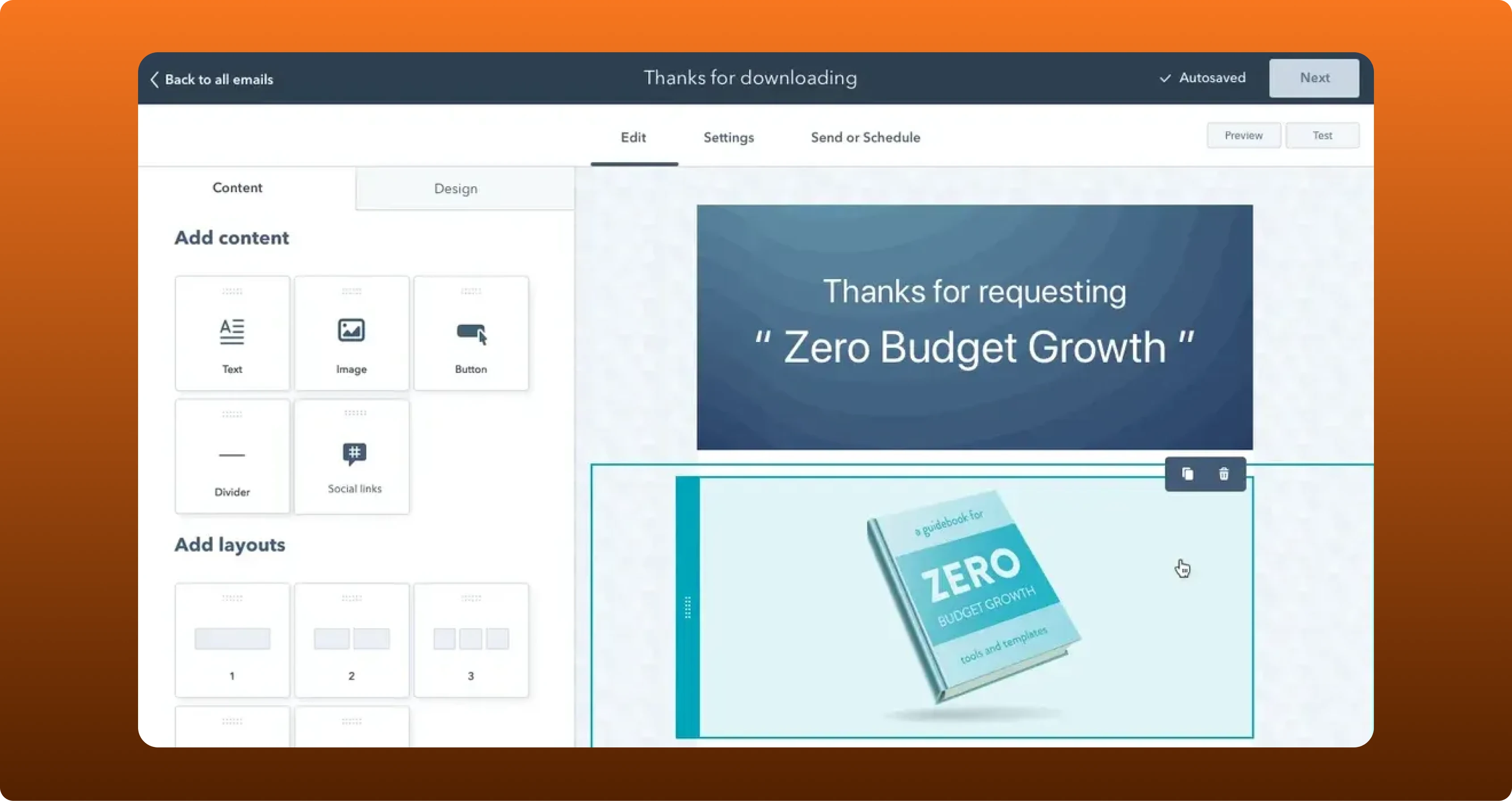 Pre-built templates and a simple drag-and-drop editor make it easy to create mobile-responsive, on-brand emails without needing a designer.