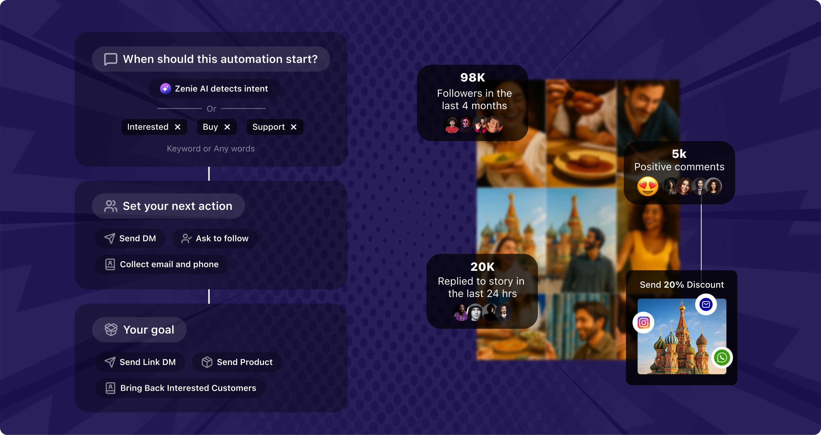ZEPIC is an AI-infused customer engagement and marketing automation platform that unifies data and channels for smarter marketing at scale. The Instagram DM automation feature is designed specifically for businesses operating at scale, bridging the gap between content engagement and business outcomes. Unlike basic keyword-triggered tools, ZEPIC employs AI to understand the real intent behind every customer interaction. Whether a user asks about pricing, seeks product availability, or expresses interest in booking a destination, ZEPIC’s Zenie AI detects intent and triggers personalized, relevant automated replies.