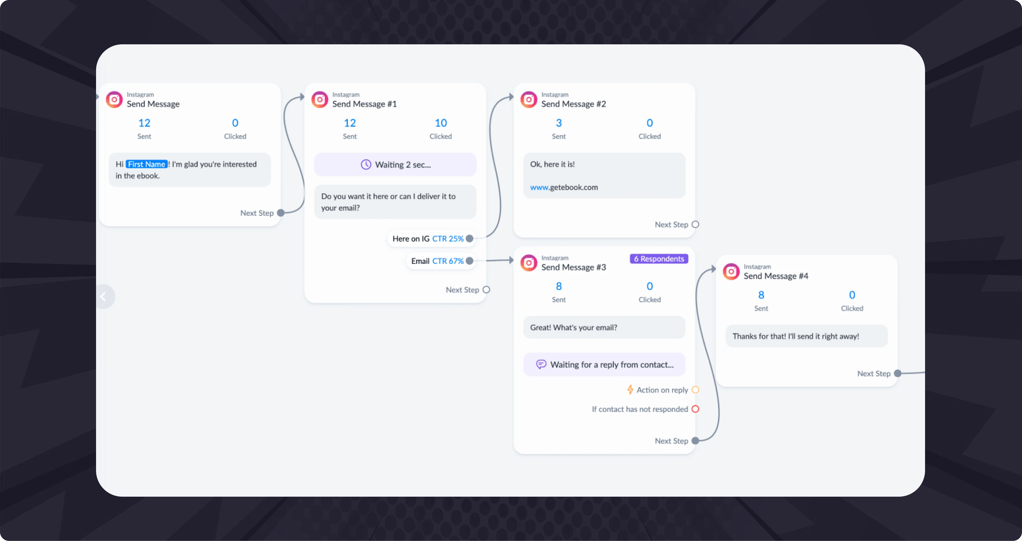 Most Instagram automation tools can identify specific keywords in DMs, story replies, or comments and automatically trigger relevant responses or workflows. For example, when a user messages “pricing” or “discount,” the system can instantly send details or direct them to a sales representative. The result is a smoother experience for customers and more time for teams to focus on strategic, high-impact tasks.