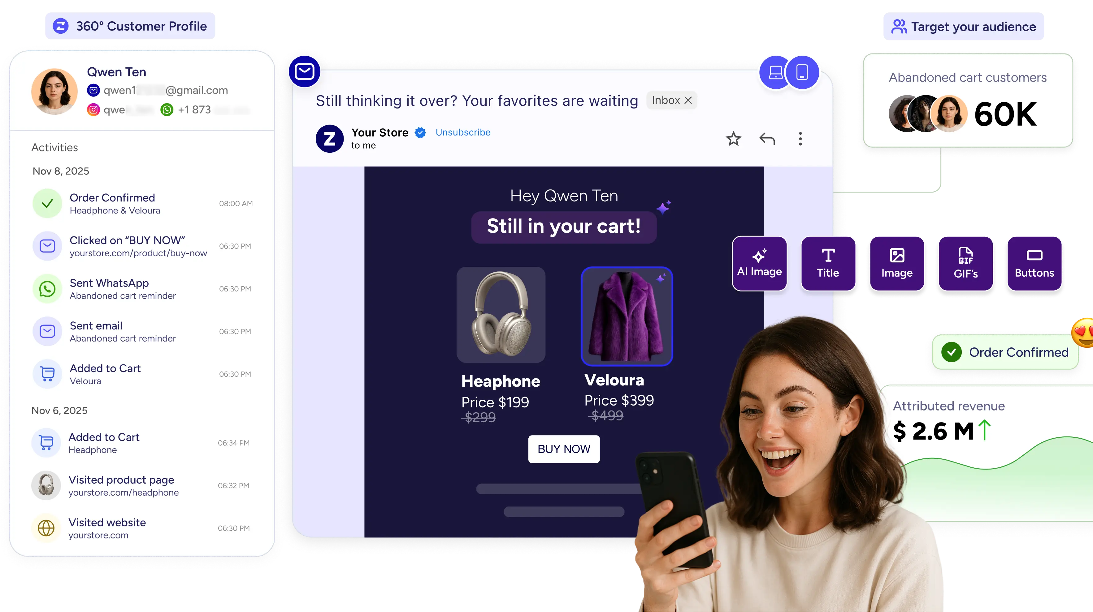 With ZEPICâs rich customer data and deep personalization, your emails donât just get opened and clicked â they drive real action and revenue.