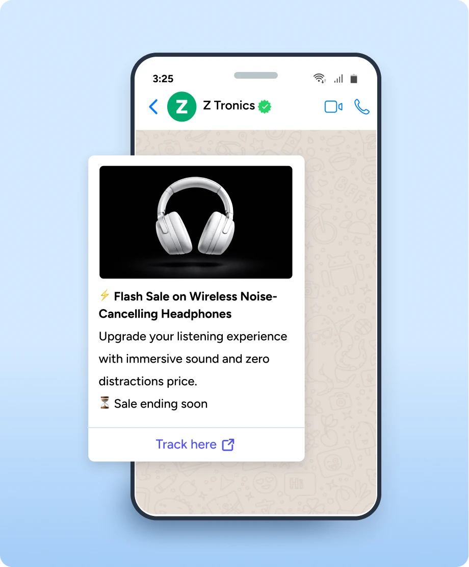 Target customers based on past purchases and engagement. Send rich media broadcasts with product images, videos, and CTA buttons like Buy Now or Shop Collection. Schedule campaigns to go live exactly when the sale starts.